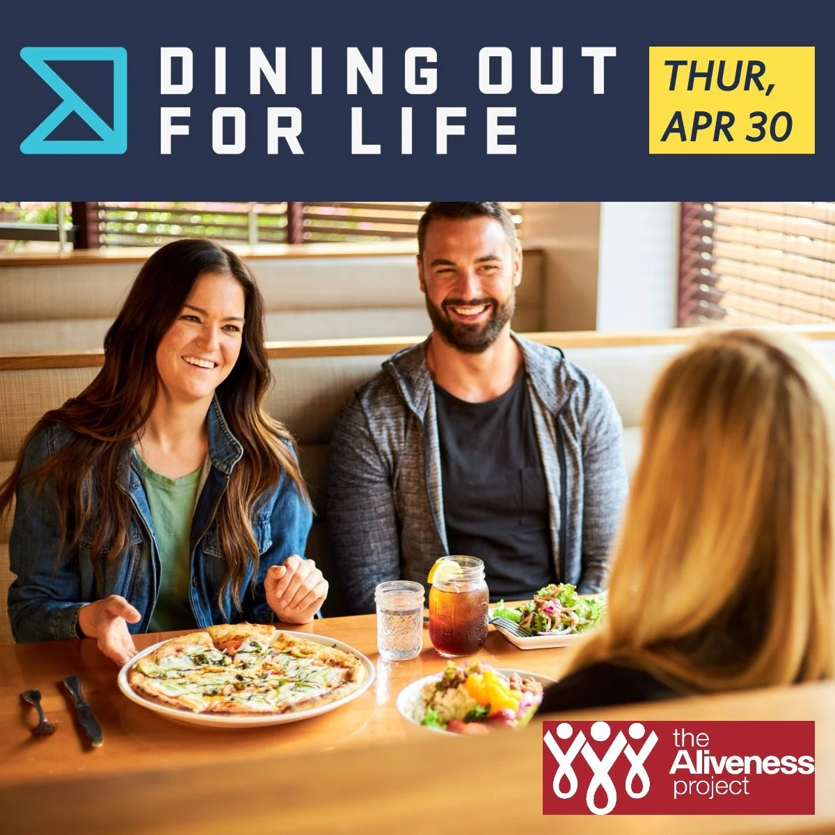 Join us on THUR, APRIL 30, as we proudly uphold our Platinum+ Level sponsorship for this year's DINING OUT FOR LIFE. Once again, we are DONATING 50% of ALL FOOD SALES* to The Aliveness Project, extending help and hope to our neighbors living with HIV/AIDS.